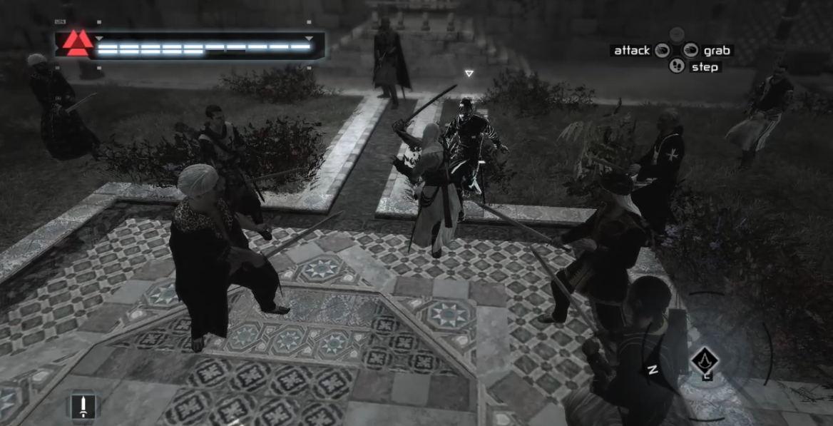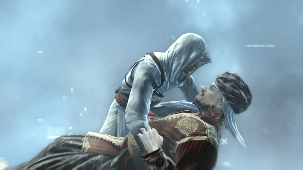 Bem, aqui entra um dos aspectos que Assassin’s Creed “1” mais acerta: o desenvolvimento de Altair. É visível como o protagonista do jogo evoluí do início até a sua conclusão. Afinal, Altair precisava se redimir por aquilo que fez no início da campanha e ter de volta a honra que tinha com a Irmandade. Nesse processo, ele vai entendendo o que realmente significa ser um Assassino e qual a função dos Assassinos, em especial ao que tange aos civis, deixando de lado a arrogância que tinha antes.