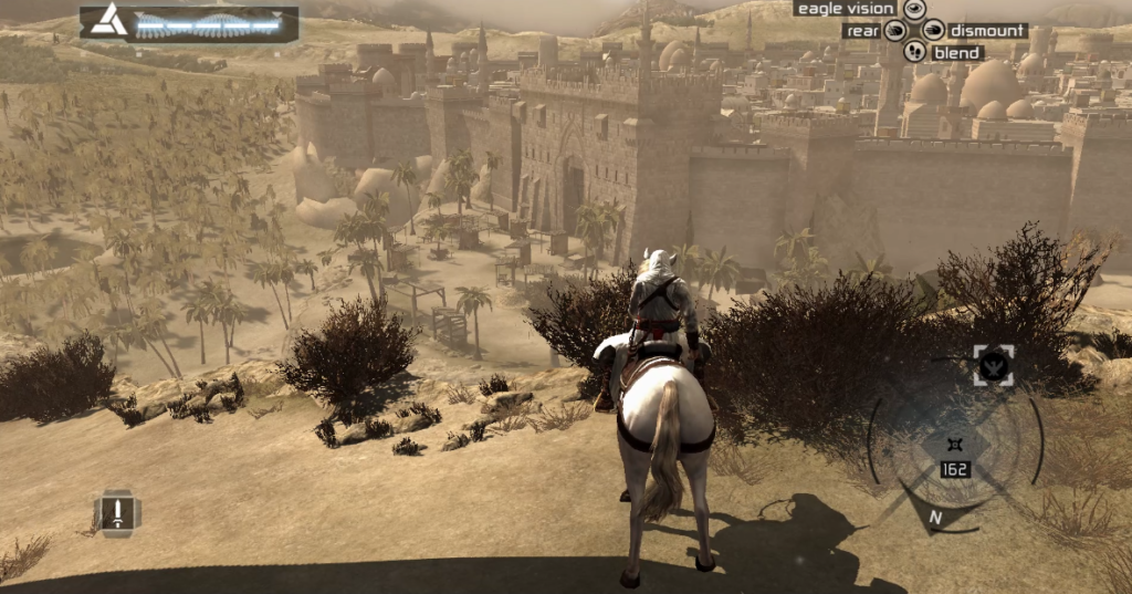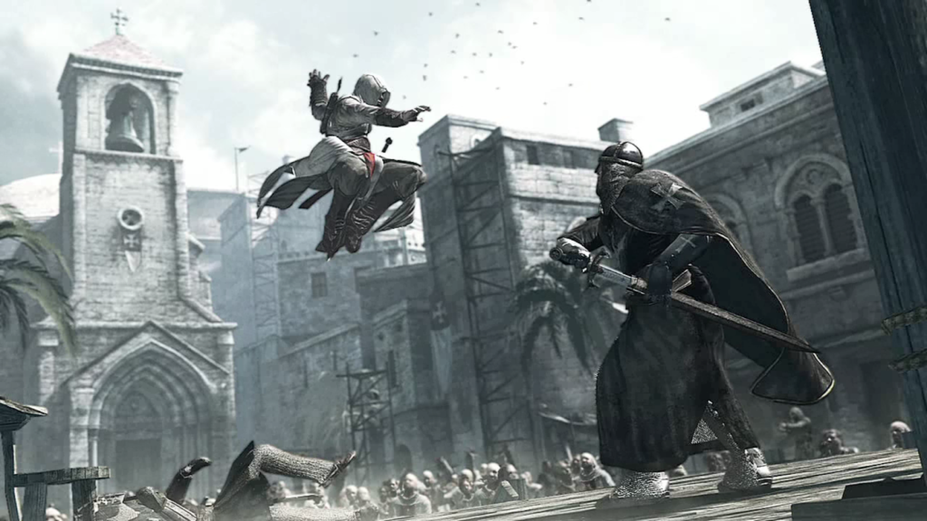 Nesse contexto, os Assassinos devem libertar as principais cidades daquela região do domínio dos Templários que são uma espécie de “chefe” daquelas cidades e que fazem parte de um esquema de cooperação e beneficiamento entre eles. Sendo assim, o Assassino enviado para… assassinar cada um desses templários nessas diferentes cidades é o Altair, e ele é enviado após cometer um grande equívoco em uma missão no início do game, que, como consequência, causou a morte de um outro assassino, gerando todos esses questionamentos ditos anteriormente.