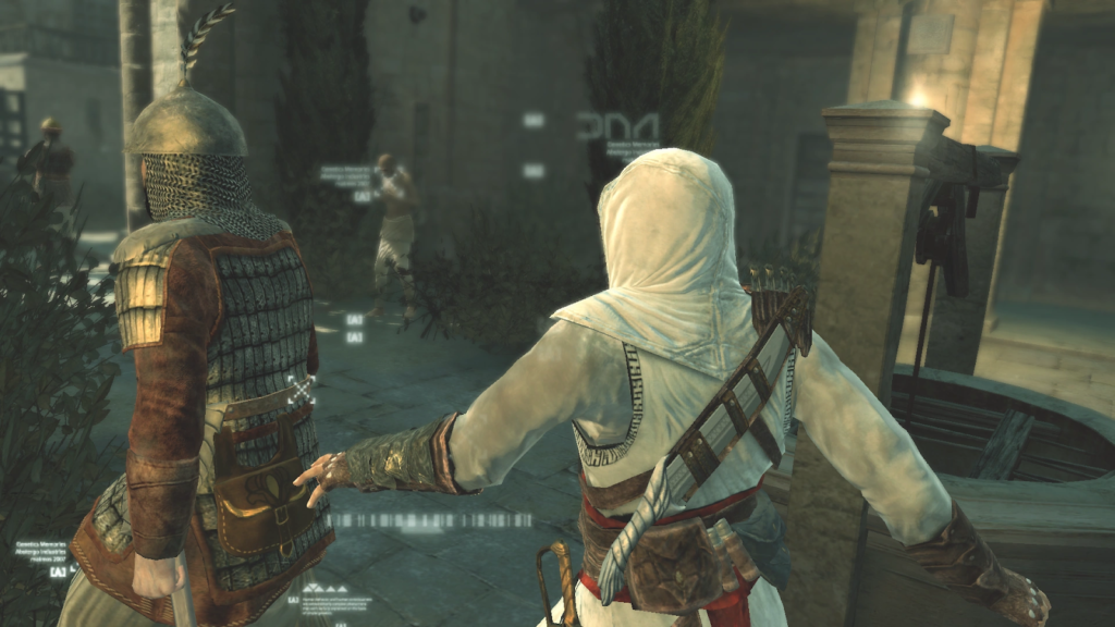 Alias, falando sobre os inimigos, a IA nesse jogo é meio hardcore, meio inacreditável. Quando eles começam a perseguir Altair nas cidades, eles fazem de uma maneira feroz (o que até é  compreensível), mas depois eles desistem e simplesmente pulam dos telhados das edificações. Eles também realizam uns saltos, umas acrobacias bem fora da realidade. Está certo que se deve ativar o senso de descrença em Assassin’s Creed, mas essa IA ultrapassa  todos os limites do que é cabível num jogo como esse. Um exemplo que ilustra isso perfeitamente é uma vez em que eu  estava fugindo e me escondi, os soldados pararam de me perseguir, e então eles simplesmente pularam do telhado de uma casa e caíram mortos no chão.  Acho que os coitados devem ter desistido de viver…