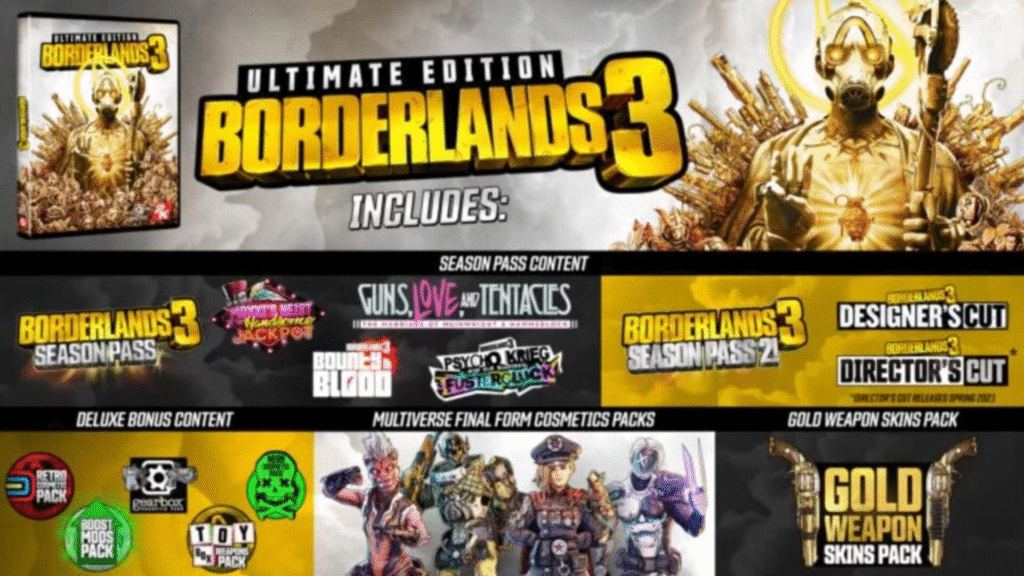 A versão Ultimate de Borderlands 3 inclui todos os DLCs lançados, proporcionando: