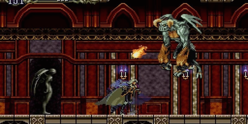 Este título consolidou o estilo “Metroidvania“, oferecendo um mundo interconectado e não linear. A progressão se dá por meio da exploração e aquisição de habilidades que desbloqueiam novas áreas. Com uma vasta variedade de armas, magias, equipamentos e transformações, o gameplay é fluido, estratégico e extremamente satisfatório. O jogo equilibra combate, exploração e descoberta com maestria, oferecendo dezenas de horas de conteúdo.