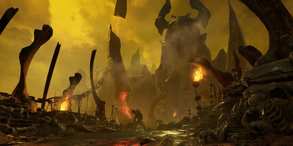 Apesar da velocidade insana, DOOM exige inteligência. Cada inimigo tem fraquezas específicas, cada arena tem um ritmo próprio. Se você simplesmente correr em círculos atirando, vai cair. Mas se aprender o fluxo do combate, dominar os inimigos e usar o ambiente ao seu favor, vai se transformar numa máquina de destruição com ritmo próprio — quase uma dança demoníaca coreografada.