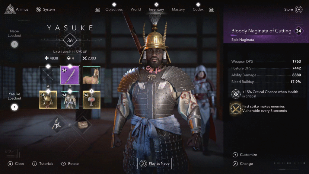 Interpretado por Tongayi Chirisa, Yasuke é um guerreiro forte e imponente, inspirado em registros históricos reais. Resgatado por jesuítas e acolhido por Oda Nobunaga, ele se torna samurai de honra. Seu estilo é voltado ao combate pesado, com armas como naginata, arco e teppo, compensando a baixa mobilidade com grande força e resistência.