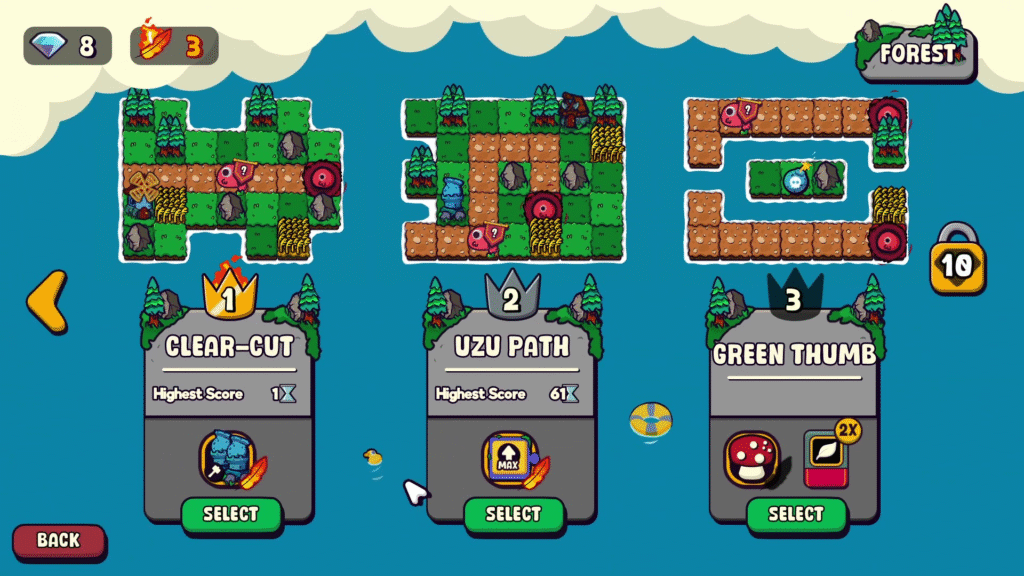 O jogo contará com 15 fases principais, além de um modo Hardcore com desafios extras — totalizando 30 fases únicas. Um dos destaques é a ausência de elementos aleatórios, o que permite disputas justas nos leaderboards online, onde vence quem for mais criativo e eficiente nas estratégias. A equipe também cogita DLCs e atualizações futuras, dependendo da recepção inicial do público.